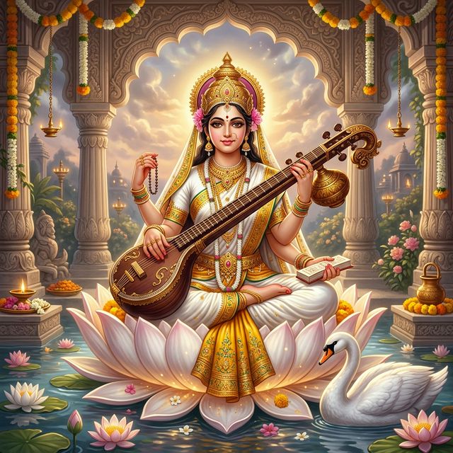 বিদ্যার দেবী সরস্বতীর আরাধনা